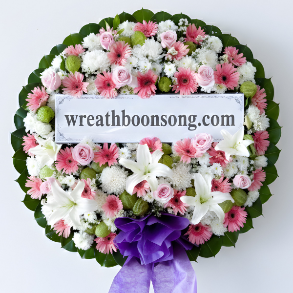 พวงหรีดดอกไม้สด ราคา 2,500 บาท รหัส W1225PK — ร้านขายพวงหรีดบุญส่ง พร้อมจัดส่งพวงหรีดทั่วประเทศ