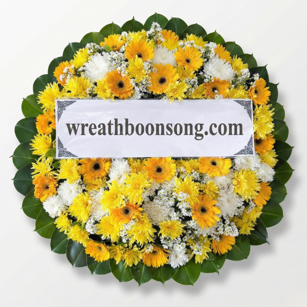 พวงหรีดดอกไม้สด ราคา 1,000 บาท รหัส W1310YL — ร้านขายพวงหรีดบุญส่ง พร้อมจัดส่งพวงหรีดทั่วประเทศ